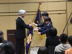 11月5日(水)、砂川市役所の大会議室において、市内全小中学校による「6校合同校旗返納式」が行われました。各学校からは、校長先生、代表児童生徒2名、引率教員の計24名が出席し、来賓、招待者等を含め、総勢84名が参加しました。