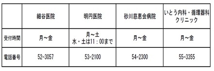 ≪市内対象医療機関≫ 〇砂川市立病院〇細谷医院〇砂川慈恵会病院 〇いとう内科・循環器科クリニック