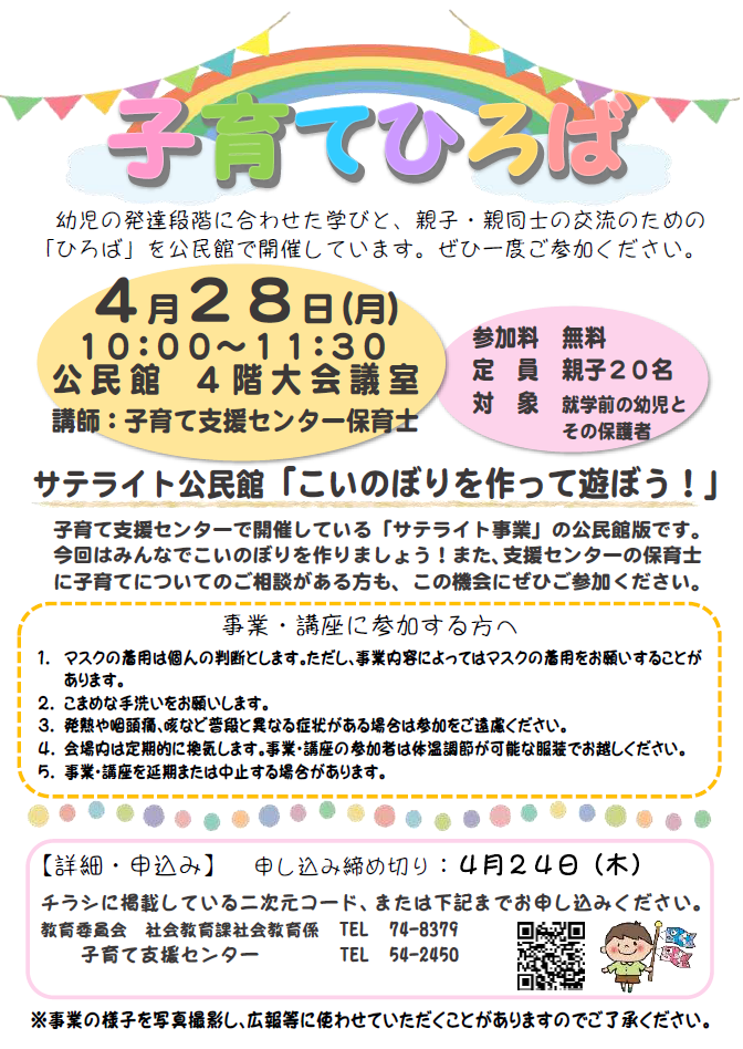 子育てひろばチラシPDFファイル(チラシに記載されている二次元コードからもお申込み可能です)