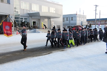 今年1年間の無火災・無災害を祈念して、「消防出初式」が消防総合庁舎前で行われました。出初式ではまず分列式が行われ、徒歩部隊と車両部隊が威風堂々と行進しました。登梯式の梯子乗り演技では、見物客が見守るなか、消防団員が6.6mのはしごに登り力強い演技を披露しました。今年も火災などが起きないように注意して、安全で安心な1年を過ごしましょう。