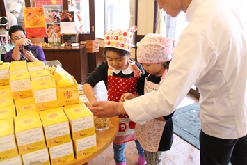 (有)ほんだ菓子司では、クッキーの型抜きを行ったほか、シュークリームに生クリームとカスタードクリームを入れるお仕事を体験しました。出来上がったお菓子をほおばる子どもたちはみんな笑顔に。自分で作ったお菓子の味はやっぱり格別のようでした。将来、お菓子屋さんになりたいと思った子どももいたのではないでしょうか。