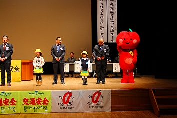地域交流センターゆうにおいて小学校入学前の父母と児童を対象とした「新入学児童交通安全教室」が開催されました。新入児童へ砂川市交通安全推進委員会から黄色い帽子や砂川青年会議所から反射材付巾着袋が贈呈されました。その後行われた交通安全教室では、砂川警察署交通課の岡崎課長より「学校の登下校」や「道路を渡る際に気を付けること」などについて紙芝居でお話をした後は、実際に横断歩道の正しい渡り方について学びました。横断歩道を渡るときは信号が青になっても「右、左、もう一度右を見て、手をあげて渡る」ということを交通安全推進員から教わりながら、横断歩道を渡っていました。